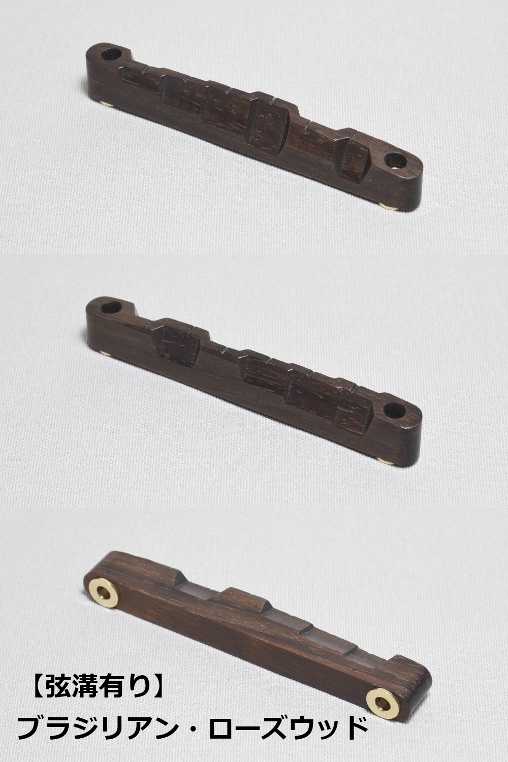 ※約52.0mmの弦間ピッチ(10.4mm均等割)にて、弦溝のプレ加工(仮彫り)済みです。特殊な弦をお使いでない限りは、このままの状態でもお使い頂けますが、各弦毎の溝の深さの調整等、より詳細なセットアップをお求めの場合は、別途ご相談下さいませ。